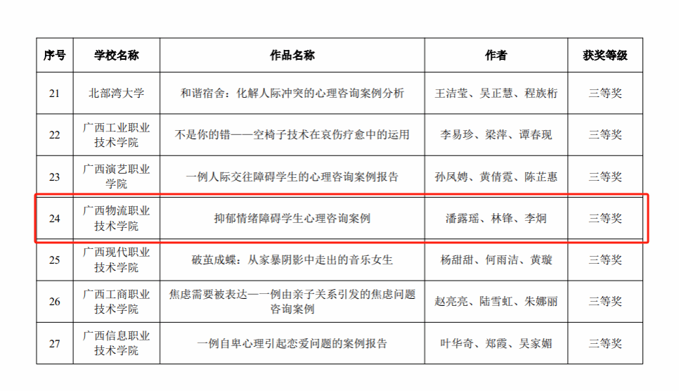 在2024年全区高校大学生“3·25”心理健康教育活动季获奖