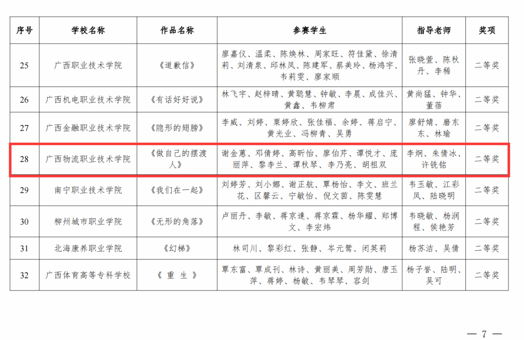 荣获2024年广西第七届大学生艺术展演活动艺术作品类甲组一等奖