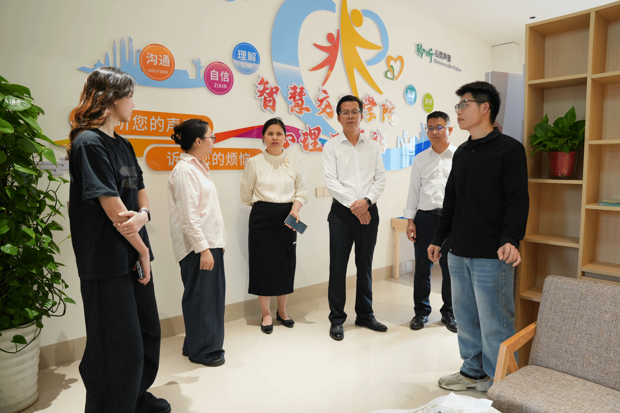 启动仪式后,参加活动的嘉宾参观了我校心理健康教育与咨询中心、“一站式”学生社区及智慧交通学院心理工作站,双方围绕深化心育合作、提升工作质效进行了深入交流与探讨。