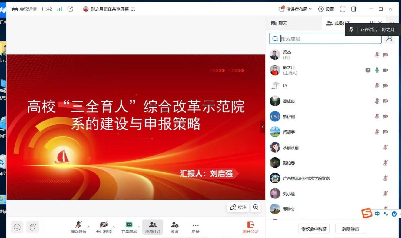 本次讲座采用线上形式,学校党委委员、副校长、宣传部部长梁杰,党委宣传部全体人员,各二级学院党总支、党支部书记及相关人员参与聆听。