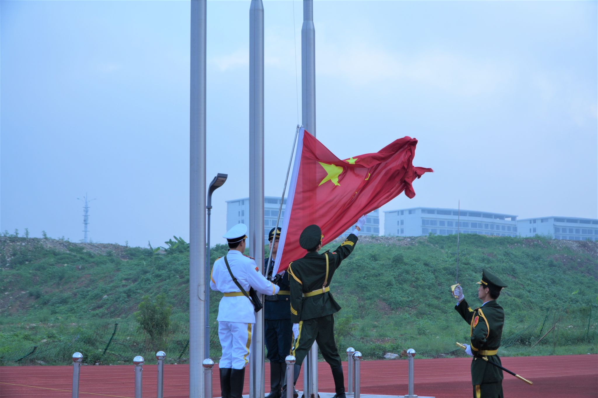 学校在西行运动场举行升国旗仪式