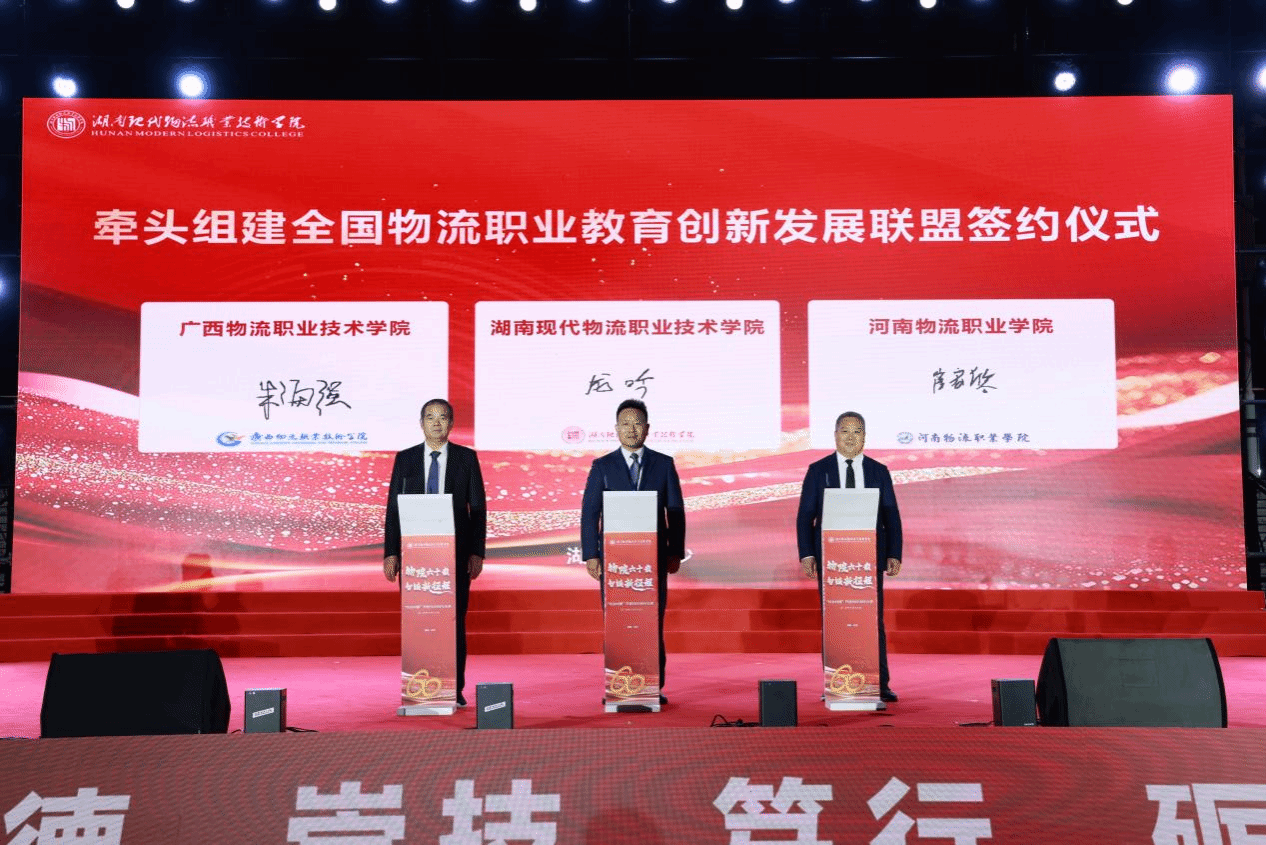 校庆活动中,由广西物流职业技术学院、湖南现代物流职业技术学院、河南物流职业学院共同发起的“全国物流职业教育创新发展联盟”正式签约。此次联盟的组建,旨在通过多方合作,进一步深化产教融合,推动物流职业教育的创新发展,提升人才培养质量,为物流行业的高质量发展提供有力支持。