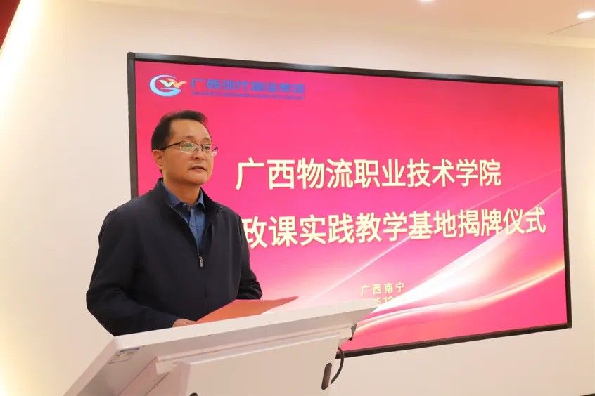 为深入贯彻落实习近平总书记关于“大思政课”建设的重要指示精神,12月11日,广西物流职业技术学院“大思政课实践教学基地”在广西现代物流集团孵化中心揭牌启用,依托集团公司深厚的“红色基因”与广西物流龙头企业的行业优势,打造大学生思政教育实践平台,推动思政教育理论与实践的深度融合。集团公司党委委员、副总经理罗圆与学校党委书记漆辉共同为“大思政课实践教学基地”揭牌。集团公司党群工作部(党委宣传部、党委统战部)部长江孙裕主持揭牌仪式。
