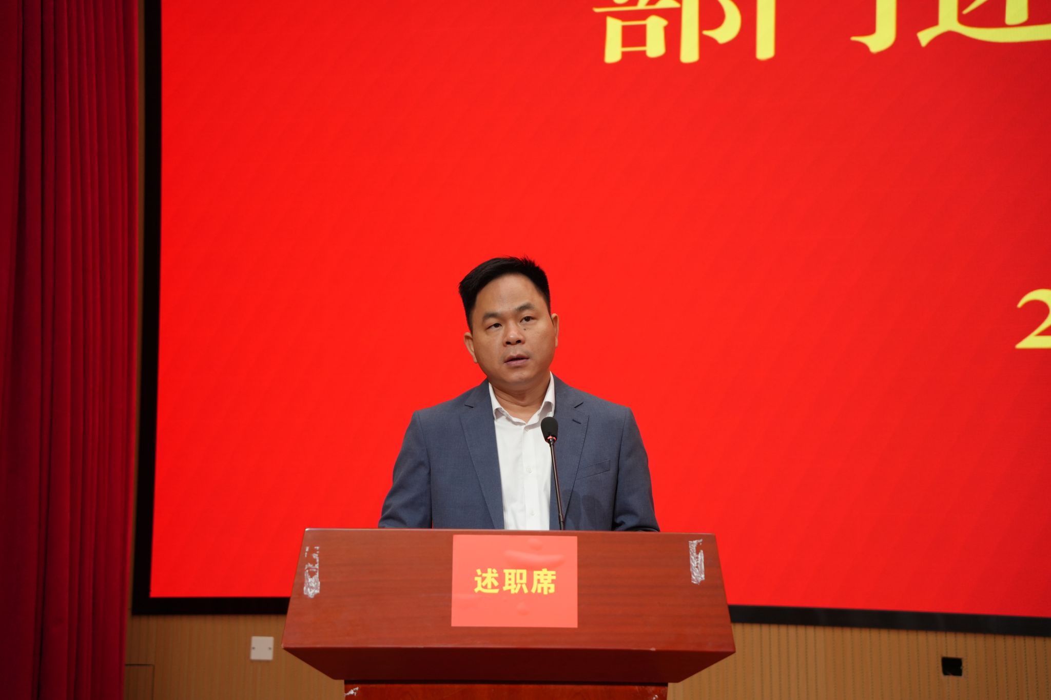 12月23日,学校召开2025年度部门述职与规划考核会议,全面总结2025年度工作成效,科学谋划2026年工作,进一步推动学校各项事业高质量发展。党委书记漆辉出席会议并参与测评。党委副书记、校长朱海强出席会议并作总结发言。党委副书记、工会主席杨一笔主持会议。在校领导班子成员覃丽燕、陈继文、陈赋光参加会议并参与测评。