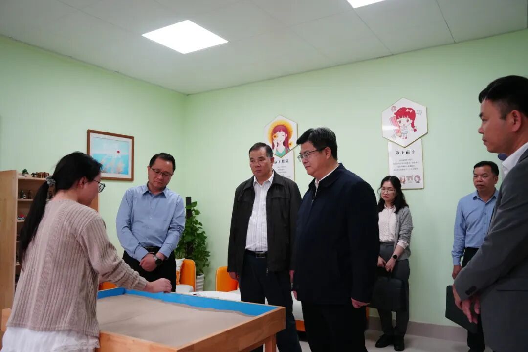 郭昌荣一行走访了马克思主义学院思政课多功能实训教学基地,现场观摩情景模拟教学,详细了解部校共建马院五年来的建设成果;在一站式学生社区和心理健康教育与咨询中心,调研组关切询问学生课后活动开展、心理咨询服务覆盖情况,对学生自我管理、心理帮扶等做法给予肯定;在物流工程学院实训室,实地查看虚拟仿真实训室等运作流程,并就产教融合项目进行交流;观看学校办学五周年发展成就展板,对学校扎根贵港、服务地方的办学实践表示赞赏。