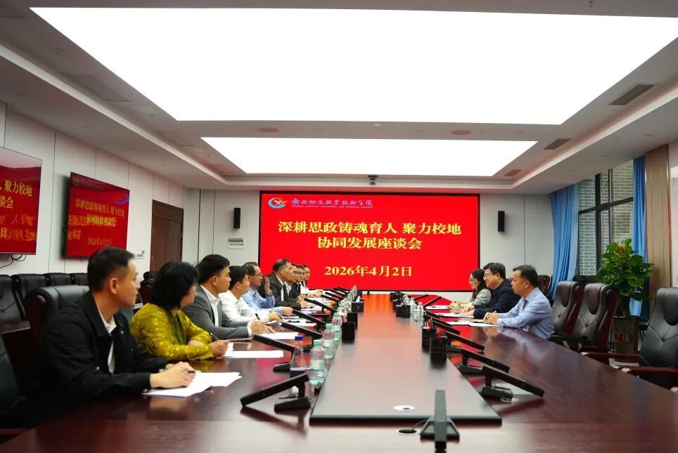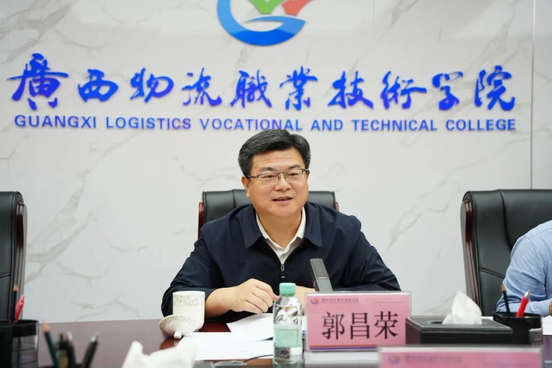 在座谈会上,郭昌荣指出办学定位清晰、发展态势良好,并就深化校地合作提出四点意见:一是健全常态化沟通机制,强化校地信息互通与工作协同,推动校地合作走深走实;二是强化思政育人支持力度,贵港市将在红色研学基地建设、科研服务、人才培养等方面提供支持,助力打造桂东南思政教育高地;三是创新思政品牌载体,深度整合贵港红色文化资源,打造具有本土特色的思政教育品牌;四是聚焦物流强市战略需求,希望学校依托专业优势,共建“产学研用”联合体,以高质量育人成果为贵港打造现代物流枢纽、推动区域高质量发展提供坚实人才与智力支撑。