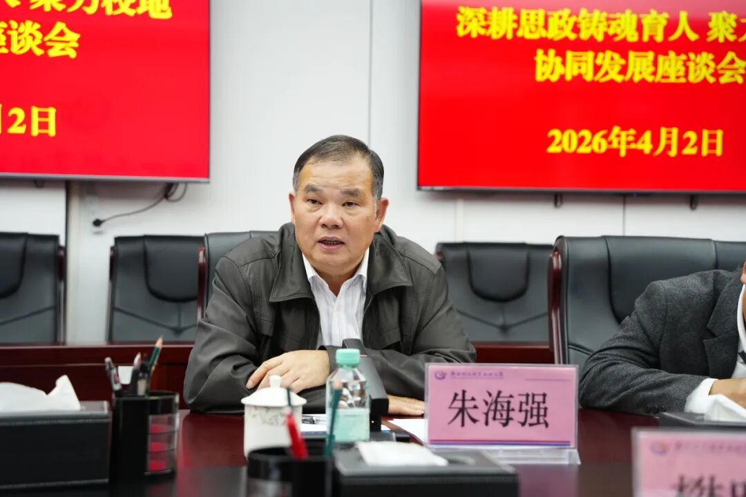 朱海强汇报了贵港市“大思政课”建设研究院建设推进情况,建议整合市域思政教育资源,通过校地互聘专家教授,讲好贵港红色文化故事;发挥示范作用,推动领导干部走进大学课堂讲授思政课,将职业道德、工匠精神等资源转化为生动的思政素材,引导学生在一线实践中感悟家国情怀与责任担当。
