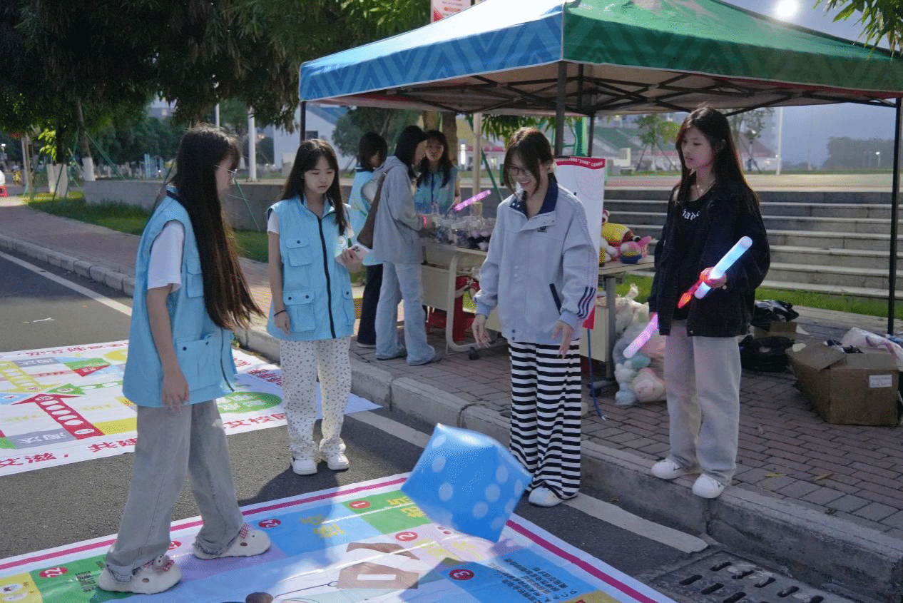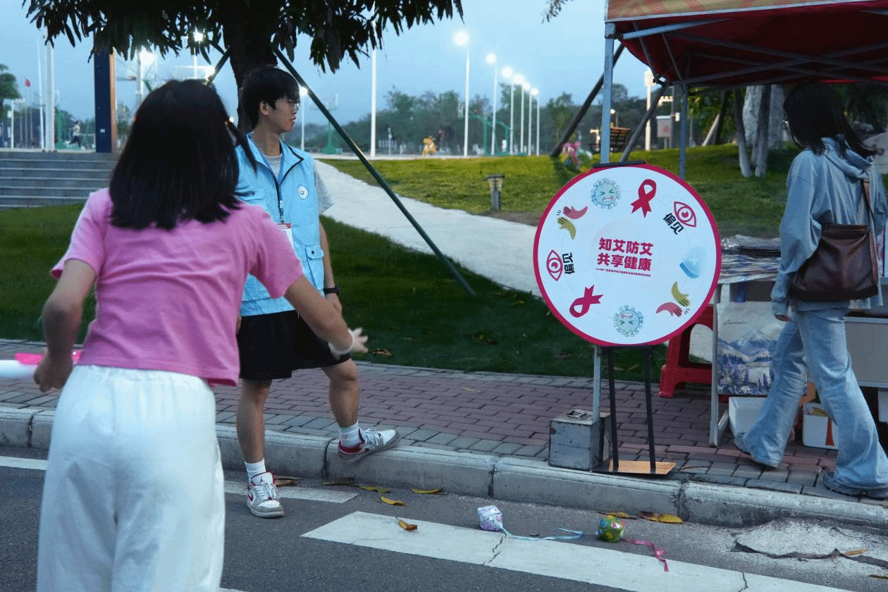 本次夜跑路线沿途设置七大趣味互动点位,包含 “焦” 你带套技能挑战、“艾” 的智囊团知识问答、移动 “艾” 靶投球挑战、防艾拼图大挑战、真人飞行棋、为 “爱” 正名签名、“艾的抱抱” 等环节,把防艾知识、自我保护技能与趣味游戏有机结合,让师生在奔跑与互动中轻松学习、加深理解。活动现场气氛热烈,参与师生热情高涨,在运动中释放青春活力,在体验中提升防艾素养。