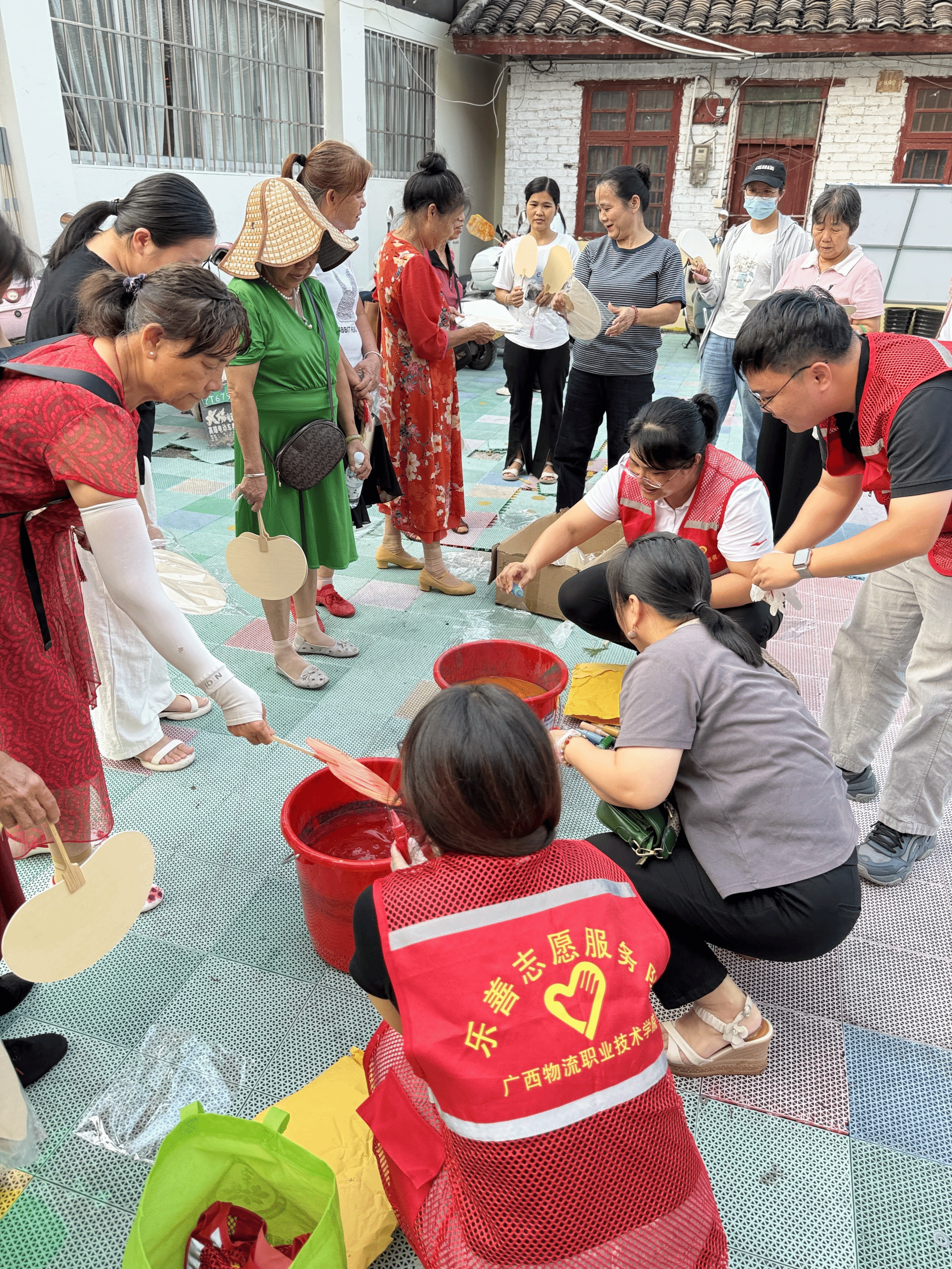 在郑芝兰、卢冰梅等党员教师的精心指导和协助下,社区居民们亲手体验了漆扇的制作工艺。参与者们沉浸在传统非遗的魅力之中,感受指尖流淌的艺术创造力。