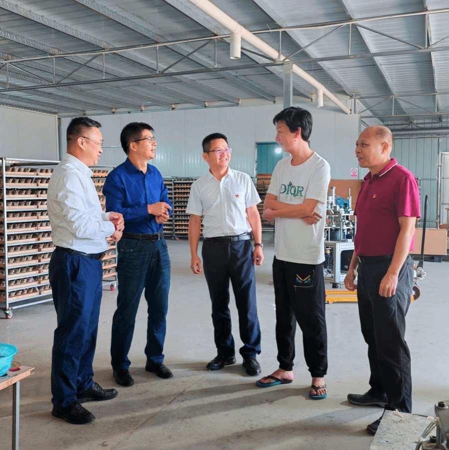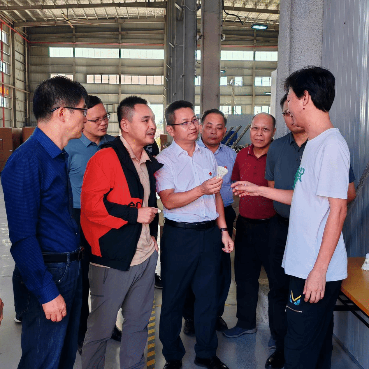 在贵港市人大常委会副秘书长何发枝和贵港市港南区人大常委会副主任李时维的带领下,数字电商学院党员教师代表到贵港市港南区桥圩羽绒产业园参观走访。