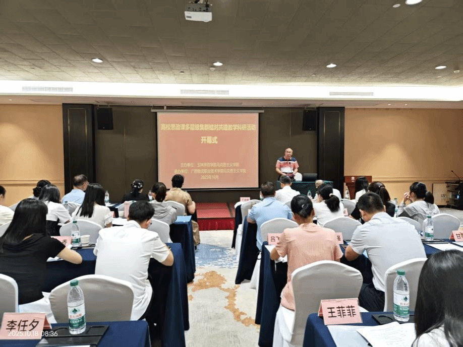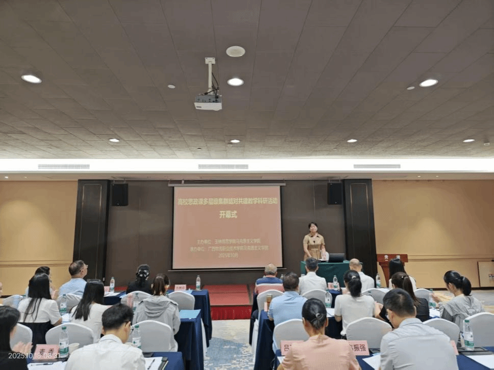 2025年10月17日至19日,由玉林师范学院马克思主义学院主办,我校马克思主义学院承办的“高校思政课多层级集群结对共建”活动在318报告厅成功举办。来自玉林师范学院、广西物流职业技术学院、梧州职业学院、梧州医学高等专科学校等共建高校的马克思主义学院领导、教研室负责人及教学骨干教师共30余人齐聚一堂,围绕思政课建设的核心议题开展深入交流与研讨。