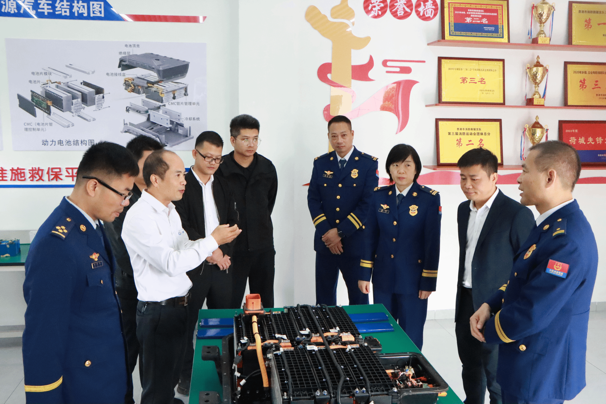 学校党委委员、副校长、党委宣传部部长梁杰,智慧交通学院党总支书记高成良,贵港市消防救援支队政委蒙琳及师生代表参加活动,仪式由覃塘消防大队大队长杨小平主持。活动现场,双方领导共同揭牌,师生代表参观工作室并观看新能源汽车火灾扑救演示,直观感受技术应用实效。