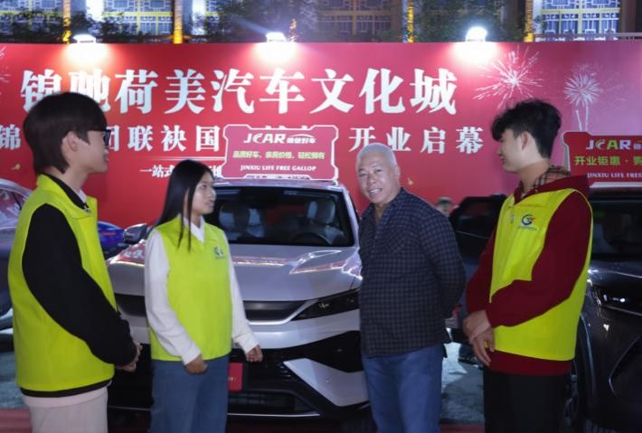 活动现场,锦驰荷美汽车文化城工作人员带学生参观车展,并讲解汽车品牌背景、车型核心亮点及实用销售技巧,为实操环节筑牢基础。