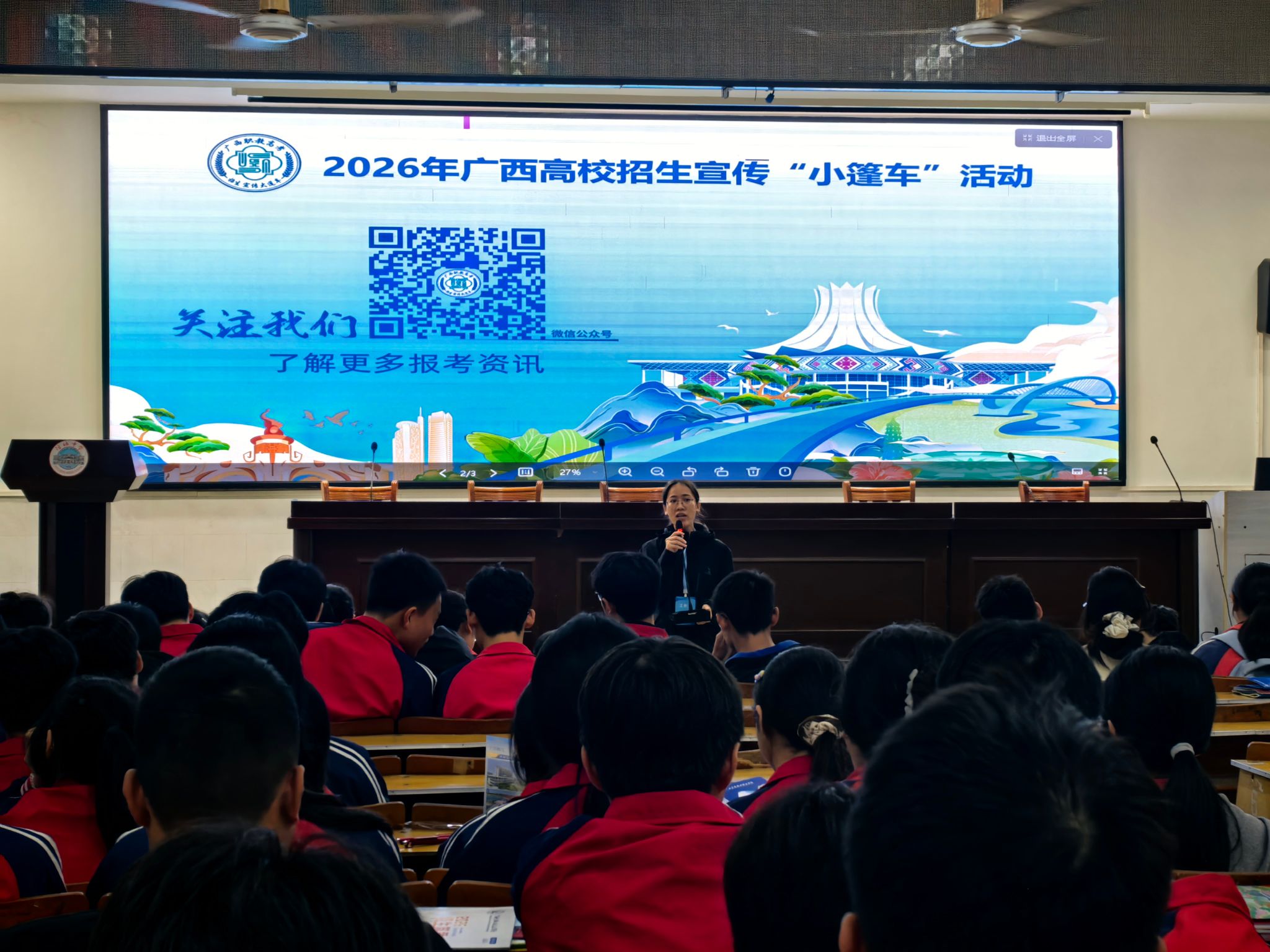 ▲我校教师在桂林临桂区第三中学报告厅宣讲