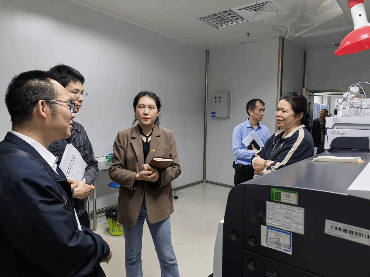 交流活动中,许艺馨一行实地参观了贵港市检验检测中心的实验室场地,详细了解中心的设备配置、检测资质、技术服务范围及科研工作开展现状。质检科负责人介绍了中心在食品检验、生态环境监测等方面的技术实力与服务成果。双方就市级重点实验室建设的具体方案展开细致研讨,针对场地整合、设备共享、科研团队组建、科研项目联合申报、人才联合培养等关键事项,逐一细化落实路径,明确合作方向。