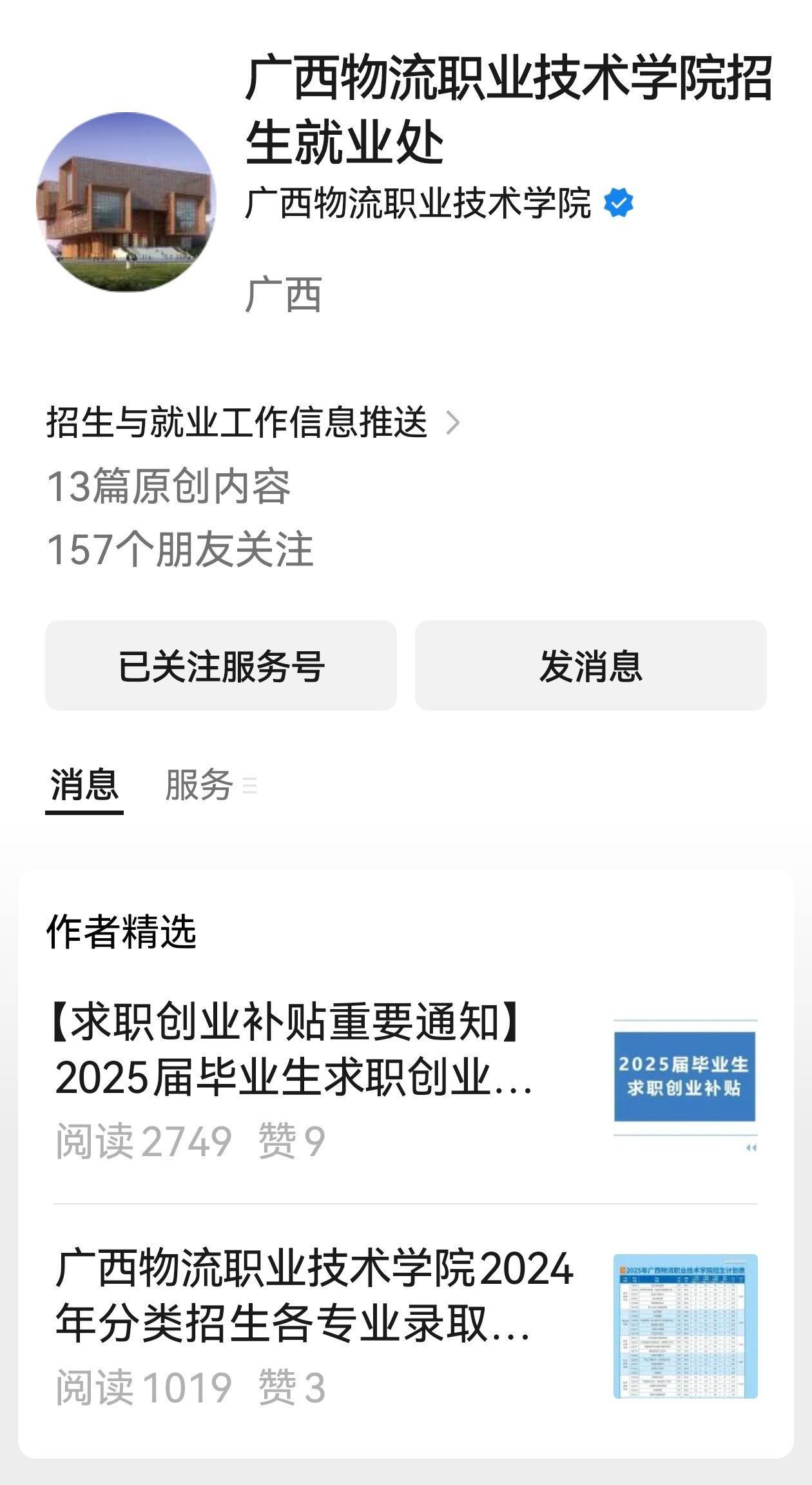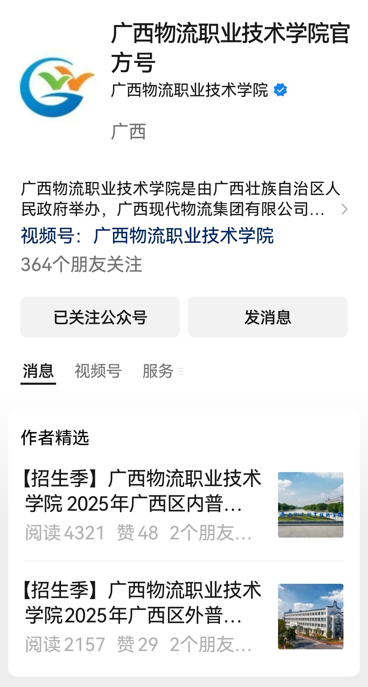 • 官方微信公众号:广西物流职业技术学院、广西物流职业技术学院招生就业处
