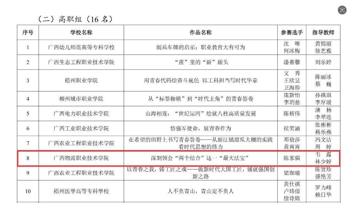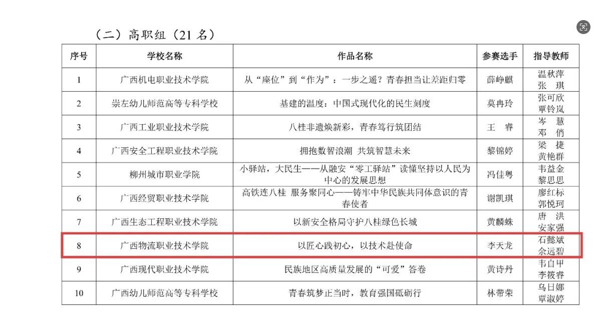 3.《广西物流职院:从开荒破土到物流职教排头兵的蜕变之路》(通讯员:梁杰、刘小溢、陆小洁)获评2025年度“好新闻”
