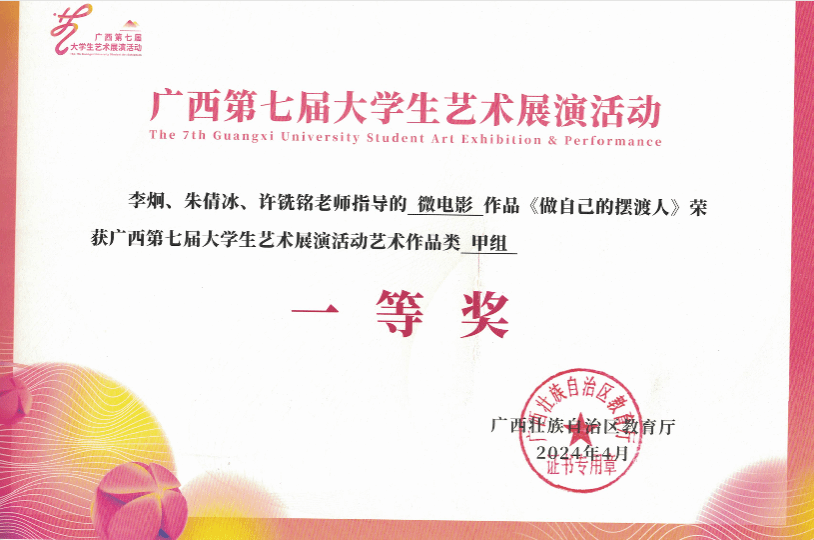 荣获2024年广西第七届大学生艺术展演活动艺术作品类甲组一等奖