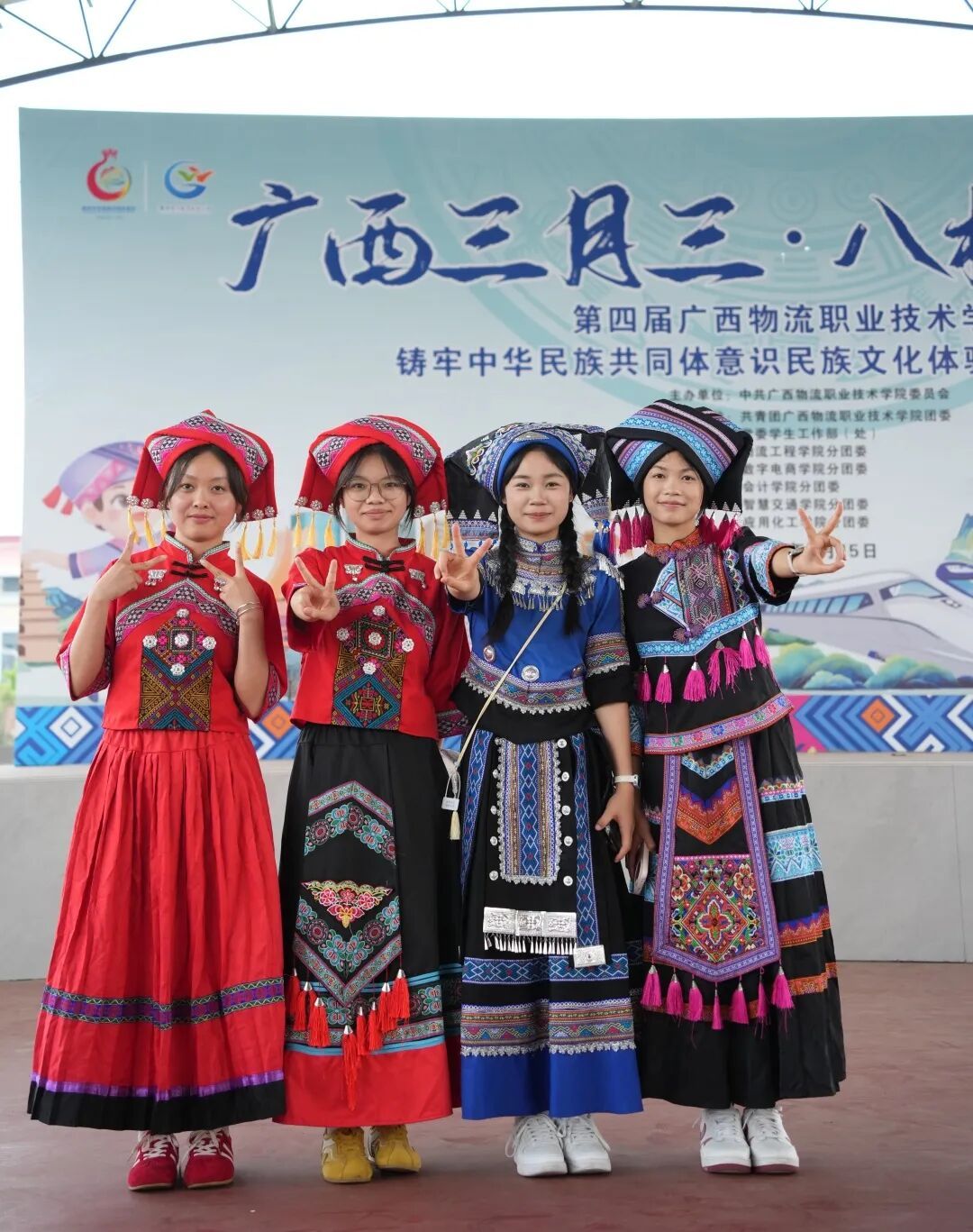 同学们身着汉、壮、瑶、苗、