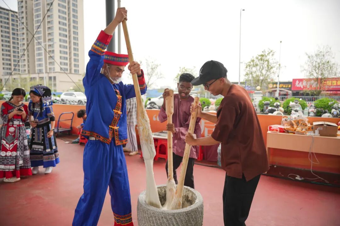 在传统打糍粑体验区,师生们轮番上阵,手持木槌,将一粒粒晶莹的糯米捶打成软糯香甜的糍粑。亲手揉捏、裹粉,咬上一口,劳动的甜蜜和传统民俗的醇香在舌尖化开。