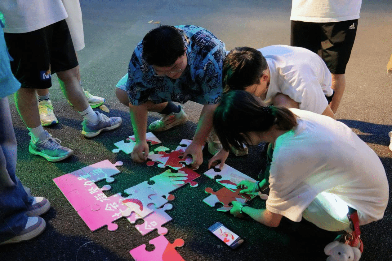 本次夜跑路线沿途设置七大趣味互动点位,包含 “焦” 你带套技能挑战、“艾” 的智囊团知识问答、移动 “艾” 靶投球挑战、防艾拼图大挑战、真人飞行棋、为 “爱” 正名签名、“艾的抱抱” 等环节,把防艾知识、自我保护技能与趣味游戏有机结合,让师生在奔跑与互动中轻松学习、加深理解。活动现场气氛热烈,参与师生热情高涨,在运动中释放青春活力,在体验中提升防艾素养。