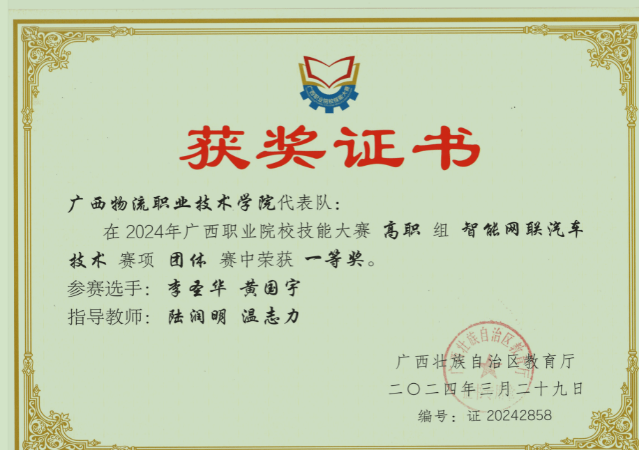 学院学生在广西职业院校技能大赛高职组智能网联汽车技术赛项团体赛中荣获一等奖