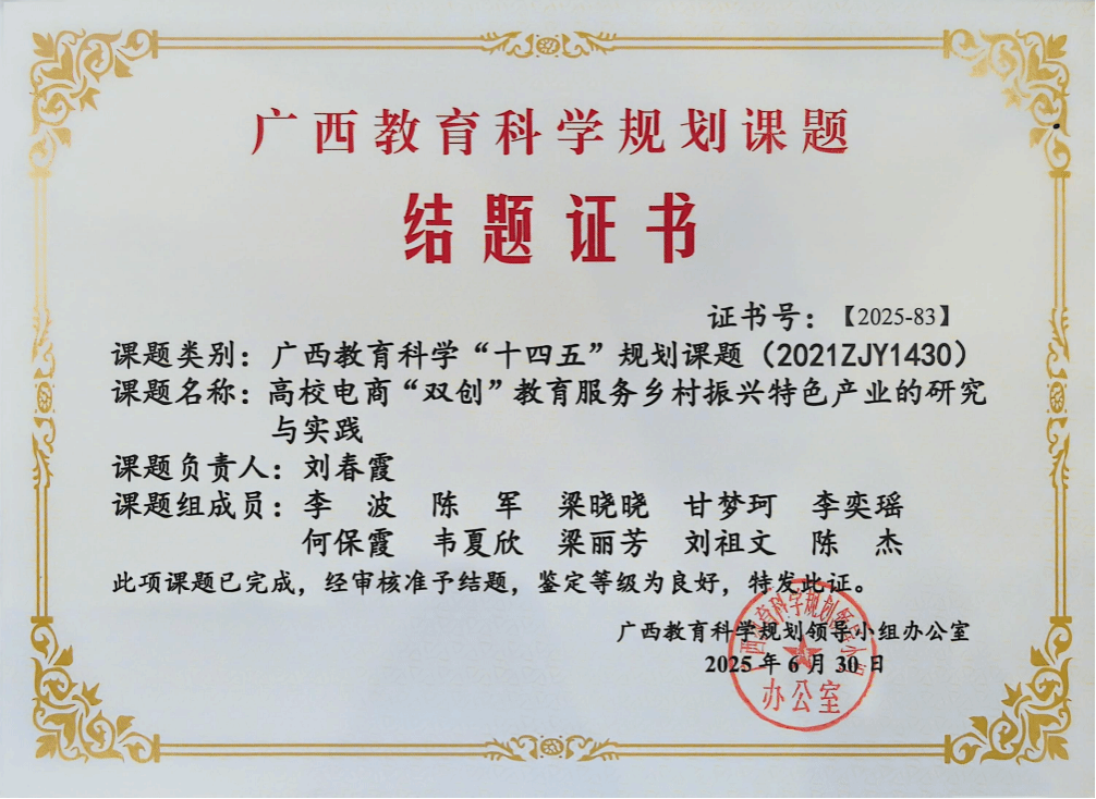 学院教师负责的广西教育科学“十四五”规划课题结题