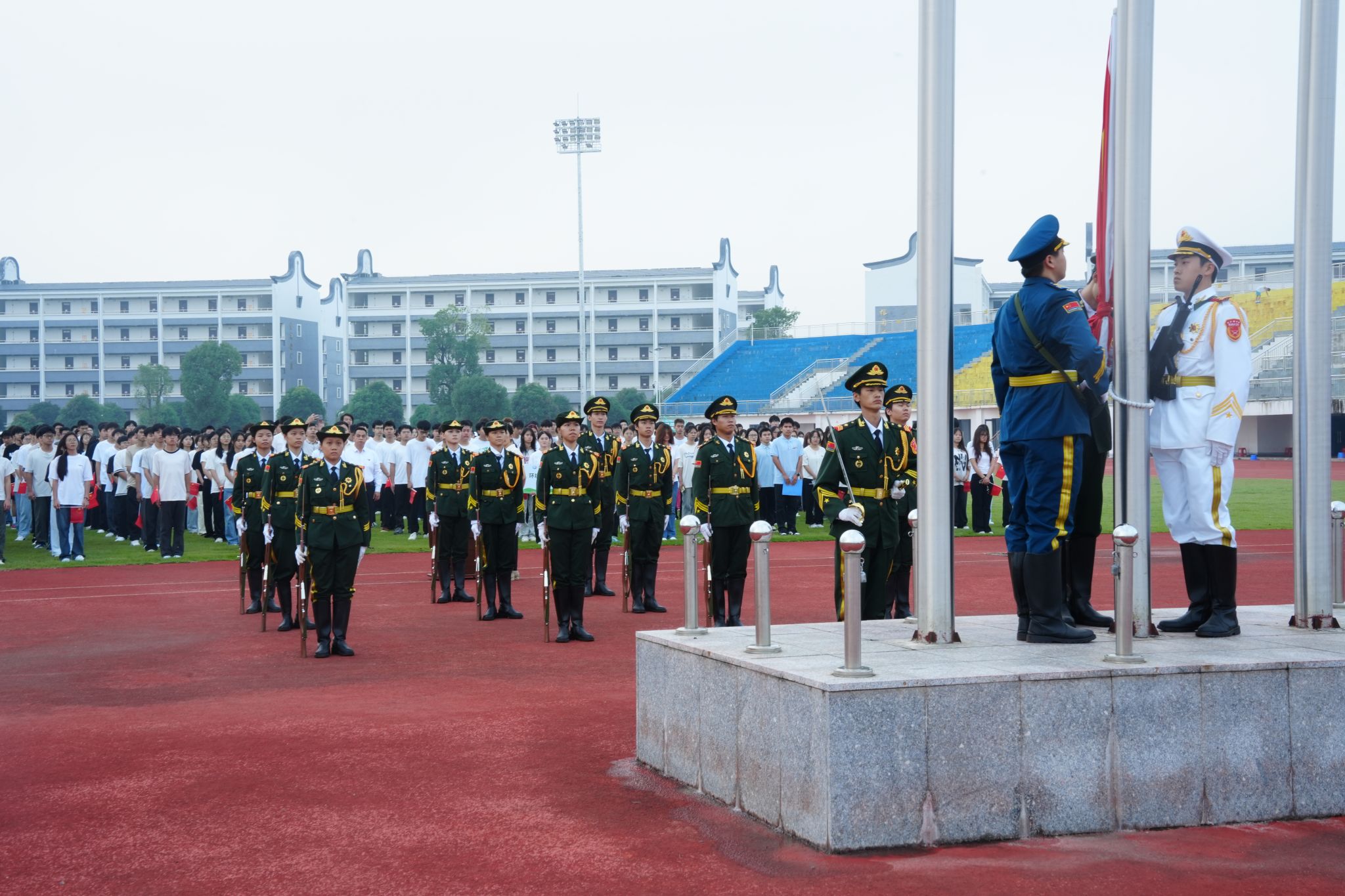 学校在西行运动场举行升国旗仪式
