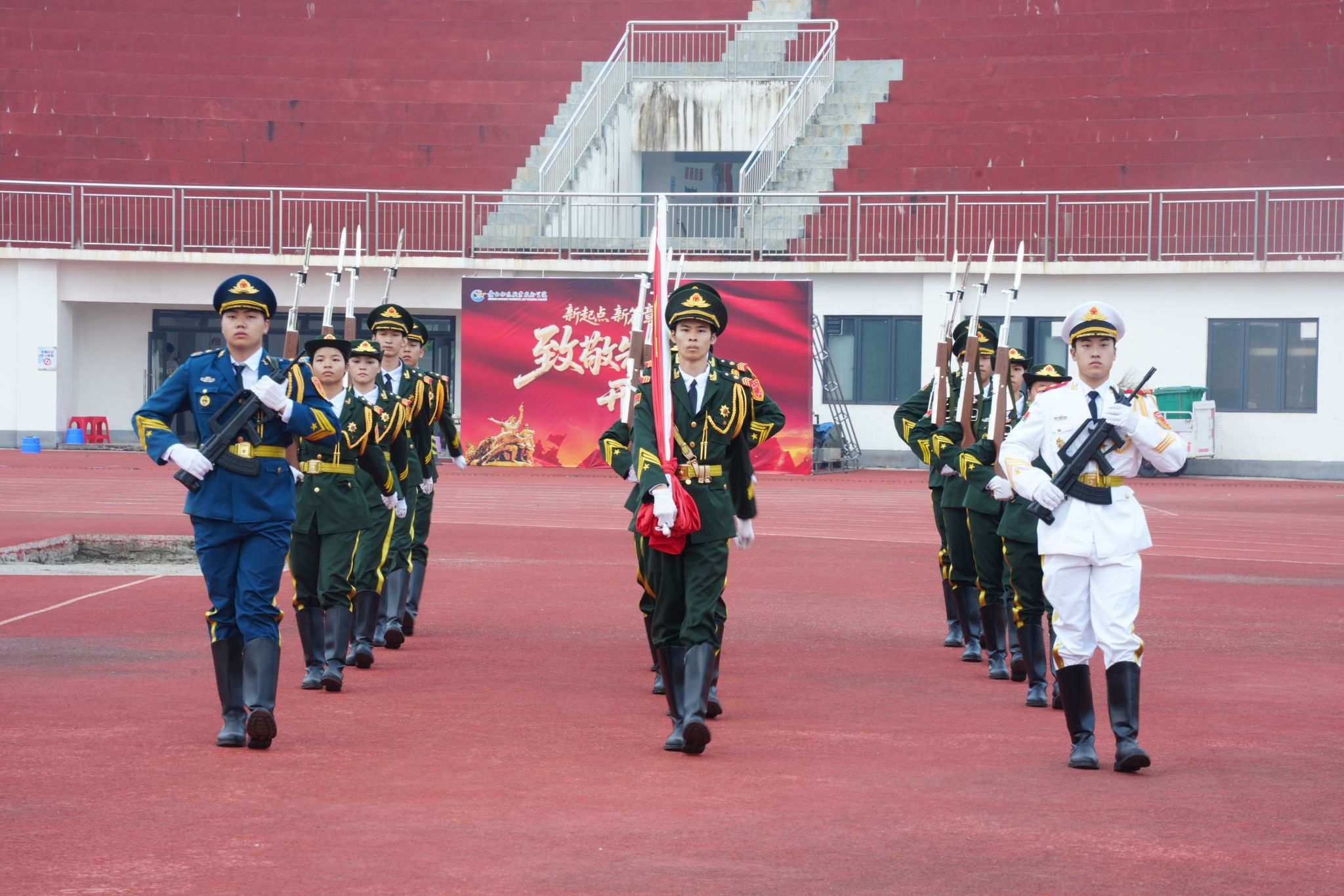 国旗护卫队迈着铿锵有力的步伐