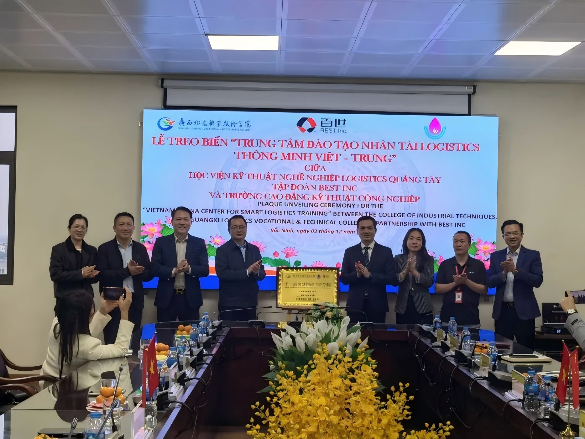 与百世物流(越南)科技有限公司围绕中越物流人才联合培养定向班建设达成共识,明确在双语教学专班打造、多语种版本仓储软件WNS课程同步部署等方面推进合作,实现课程与岗位需求精准对接;在立讯精密有限公司,代表团详细了解企业在越产业布局,针对企业对中越双语技能人才的迫切需求,双方就学生培养方向展开深入沟通,并探讨了在义安共建产业学院的可行性;在北江国际物流中心,代表团实地考察仓库与厂区,了解当地物流产业运营模式,最终与企业就定向双语技能人才培养达成合作共识;与广西桂物物流服务集团越南办事处开展座谈,进一步明确跨境物流人才培养的合作方向,为后续协同育人搭建起坚实桥梁。