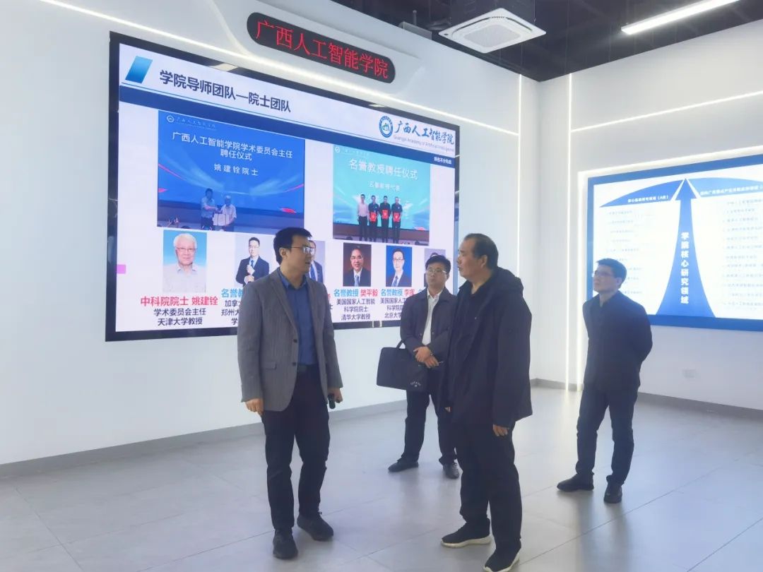 为认真贯彻落实自治区党委、政府关于加快推动人工智能高质量发展的决策部署,促进人工智能与职业教育融合发展,12月26日,我校党委副书记、校长朱海强率考察团赴广西人工智能学院开展交流学习。桂林电子科技大学研究生院副院长、南宁研究院副院长傅涛,电子工程与自动化学院教授莫太平,南宁研究院产教融合办公室负责人热情接待并参与相关活动。