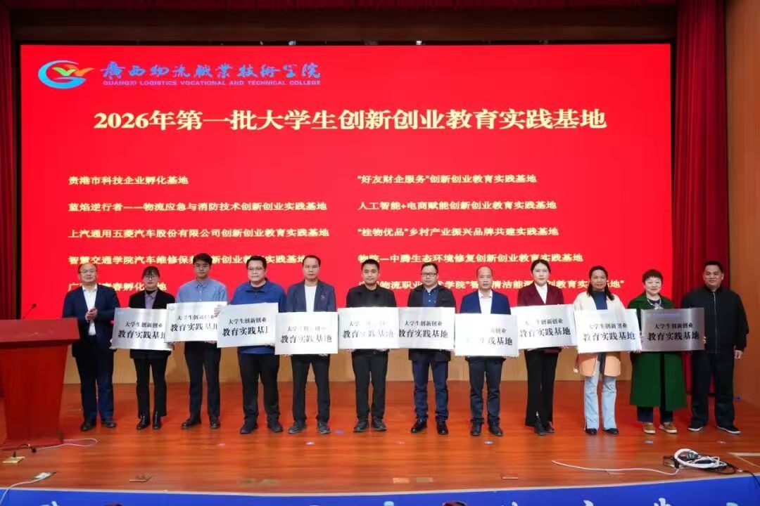 会上,学校领导班子成员为2025年就业工作先进集体、先进个人,2025年中国国际大学生创新大赛广西赛区获奖师生团队颁发荣誉证书,并为2026年第一批大学生创新创业教育实践基地授牌。学校与二级学院签订2026年招生就业创业工作责任状,明确工作目标与责任。