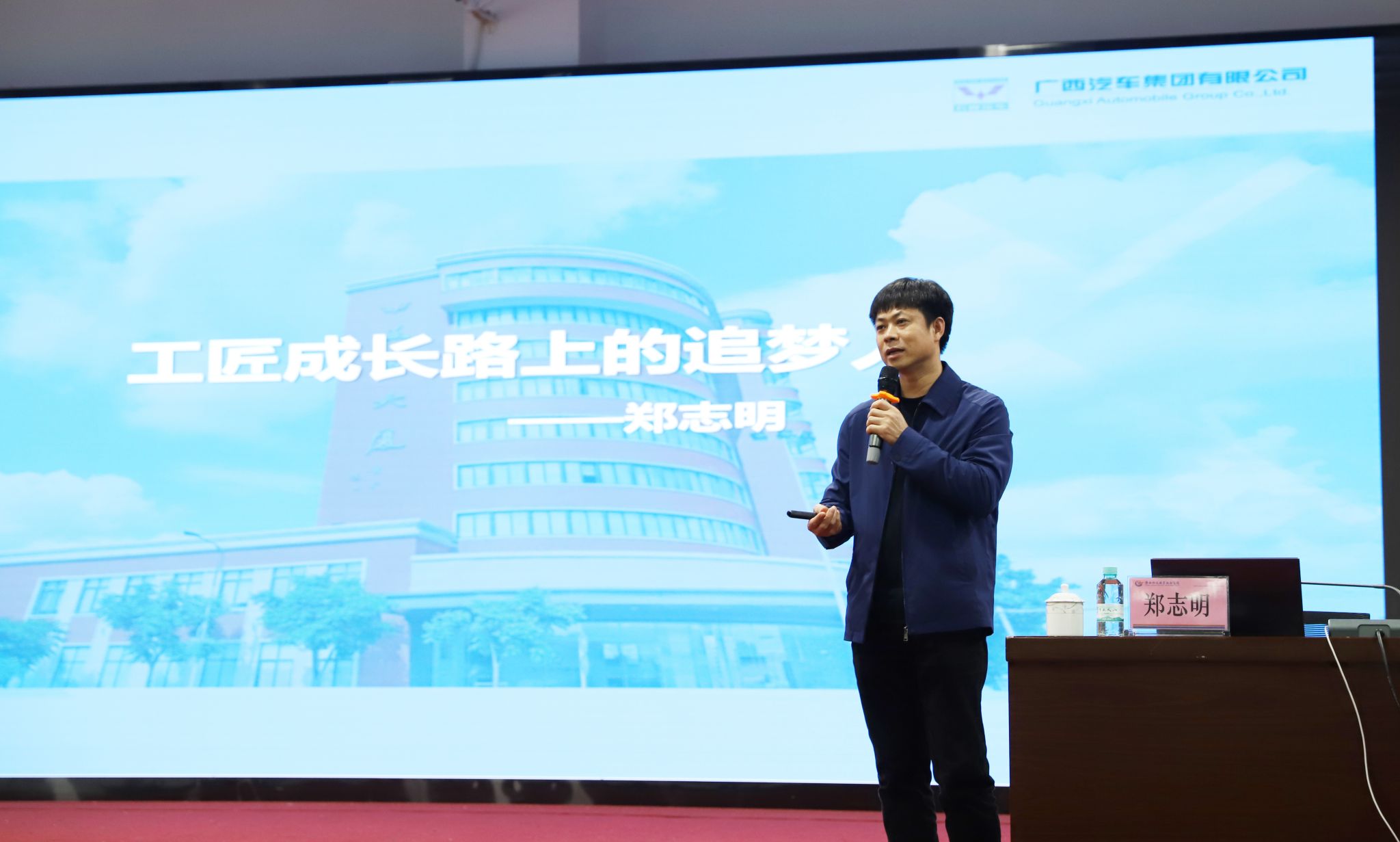 党的二十大代表、新时代汽车“智”造大国工匠、广西汽车集团有限公司首席技能专家郑志明应邀到我校为师生讲授思政课