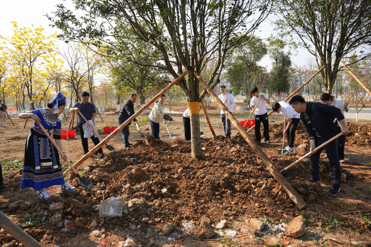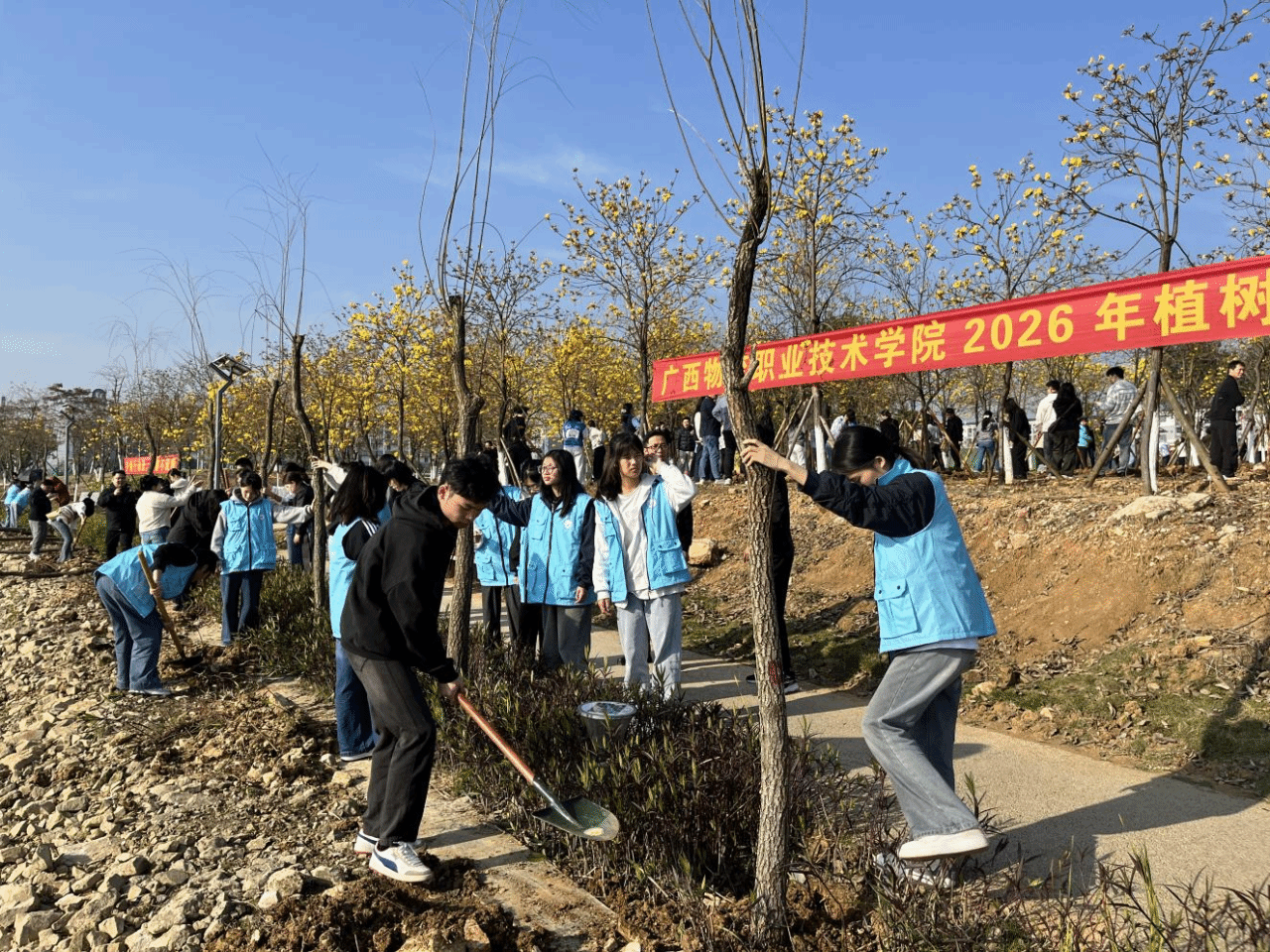 植树现场一片热火朝天。覃黎魁与师生共同挥锹培土、踩实浇水,在和煦的春风中,一株株新栽种的树苗昂然挺立,焕发出勃勃生机,让“植绿、护绿、爱绿、兴绿”的生态理念根植在每一位参与者心中。劳动间隙,覃黎魁与师生亲切交流,他强调,学校作为人才培养的主阵地,也是集团事业发展的智力引擎。希望学校与时俱进,深化教育教学改革,抢抓人工智能发展机遇,不断提升育人质量与办学水平。集团公司也将与学校进一步深化协同育人机制,整合优质资源、共建实践平台,携手培养高素质复合型人才。
