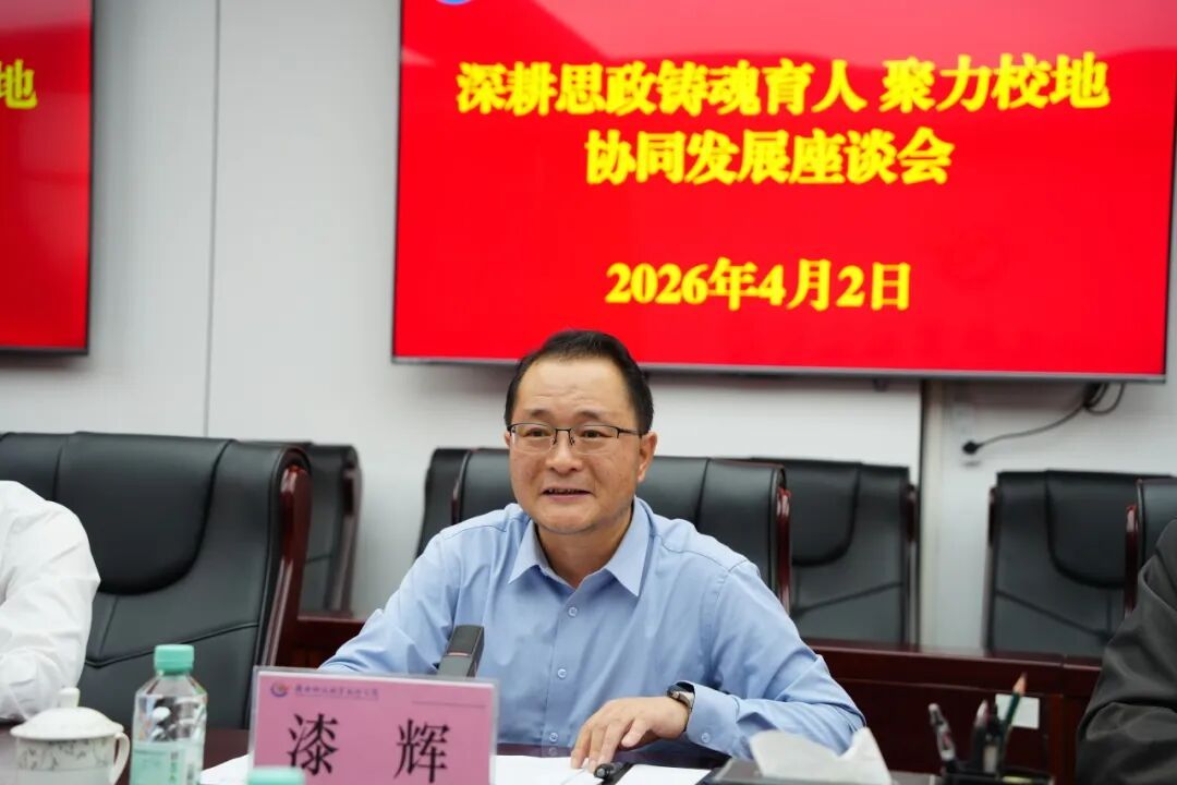 朱海强汇报了贵港市“大思政课”建设研究院建设推进情况,建议整合市域思政教育资源,通过校地互聘专家教授,讲好贵港红色文化故事;发挥示范作用,推动领导干部走进大学课堂讲授思政课,将职业道德、工匠精神等资源转化为生动的思政素材,引导学生在一线实践中感悟家国情怀与责任担当。
