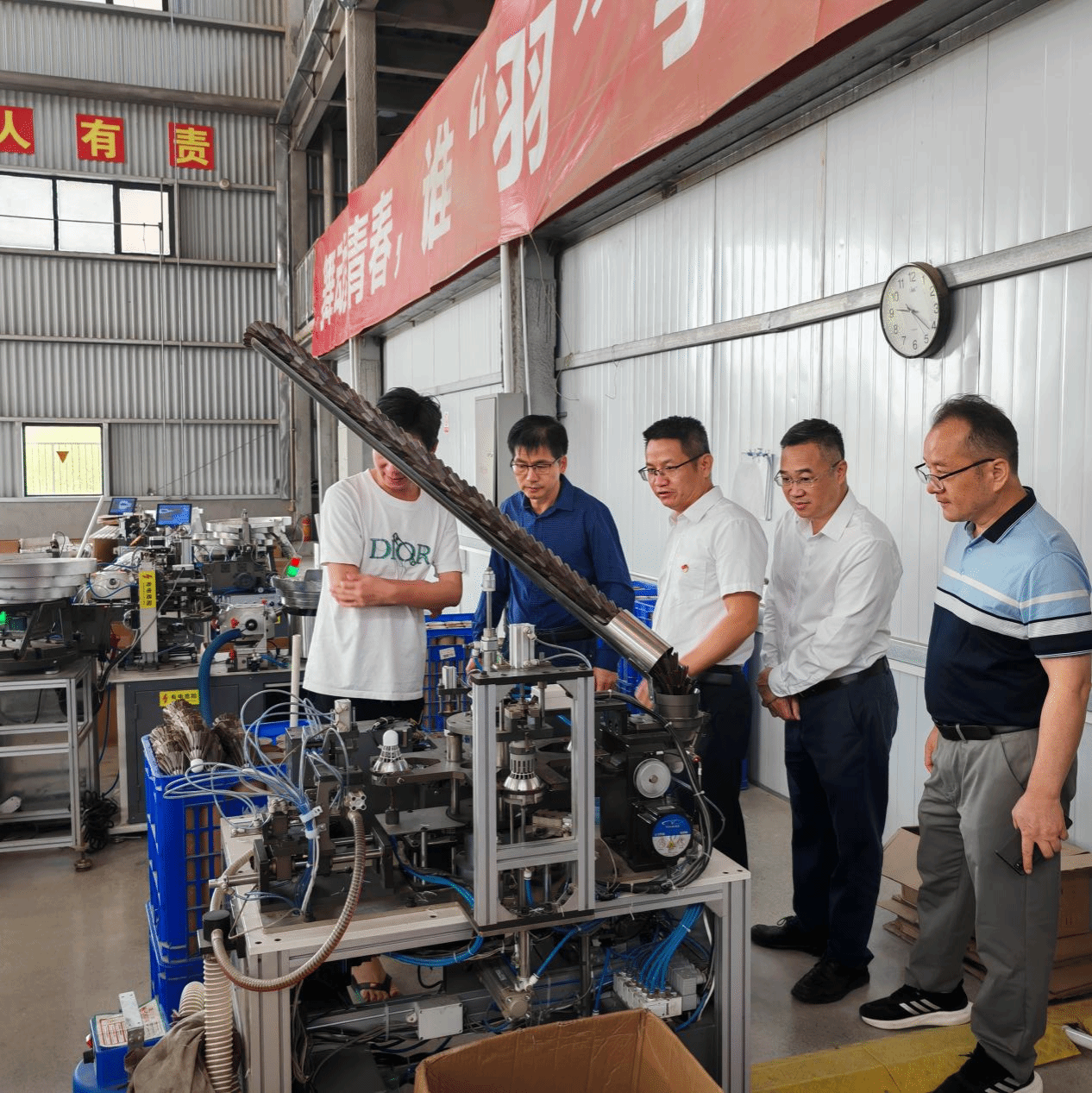 在贵港市人大常委会副秘书长何发枝和贵港市港南区人大常委会副主任李时维的带领下,数字电商学院党员教师代表到贵港市港南区桥圩羽绒产业园参观走访。