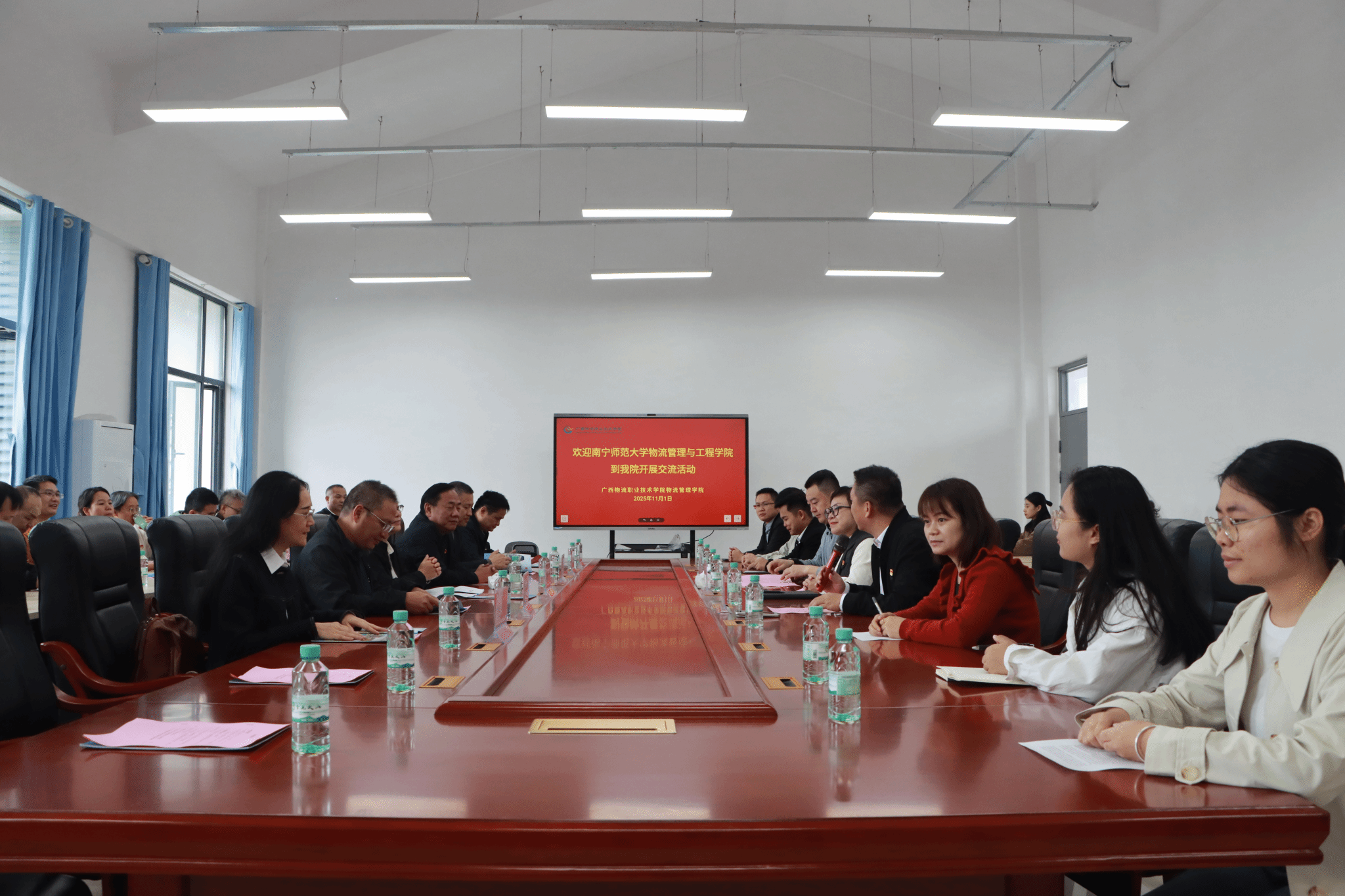 2025年11月1日上午,南宁师范大学物流管理与工程学院党委书记陈兵、院长汪德荣一行三十余人莅临我校物流工程学院开展交流访问。一行先后参观了物流工程学院党建品牌文化墙、党员活动室、文化长廊及实训教学基地,详细了解党建工作、实训课程设置、教学实施与产教融合等方面的实践与成效。