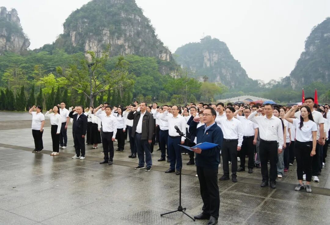 在漆辉的带领下,全体党员面向党旗庄严宣誓,重温入党誓词。铿锵的誓言彰显出全体党员传承先烈遗志、勇担时代重任的坚定决心。