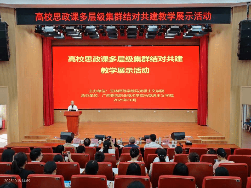 2025年10月17日至19日,由玉林师范学院马克思主义学院主办,我校马克思主义学院承办的“高校思政课多层级集群结对共建”活动在318报告厅成功举办。来自玉林师范学院、广西物流职业技术学院、梧州职业学院、梧州医学高等专科学校等共建高校的马克思主义学院领导、教研室负责人及教学骨干教师共30余人齐聚一堂,围绕思政课建设的核心议题开展深入交流与研讨。