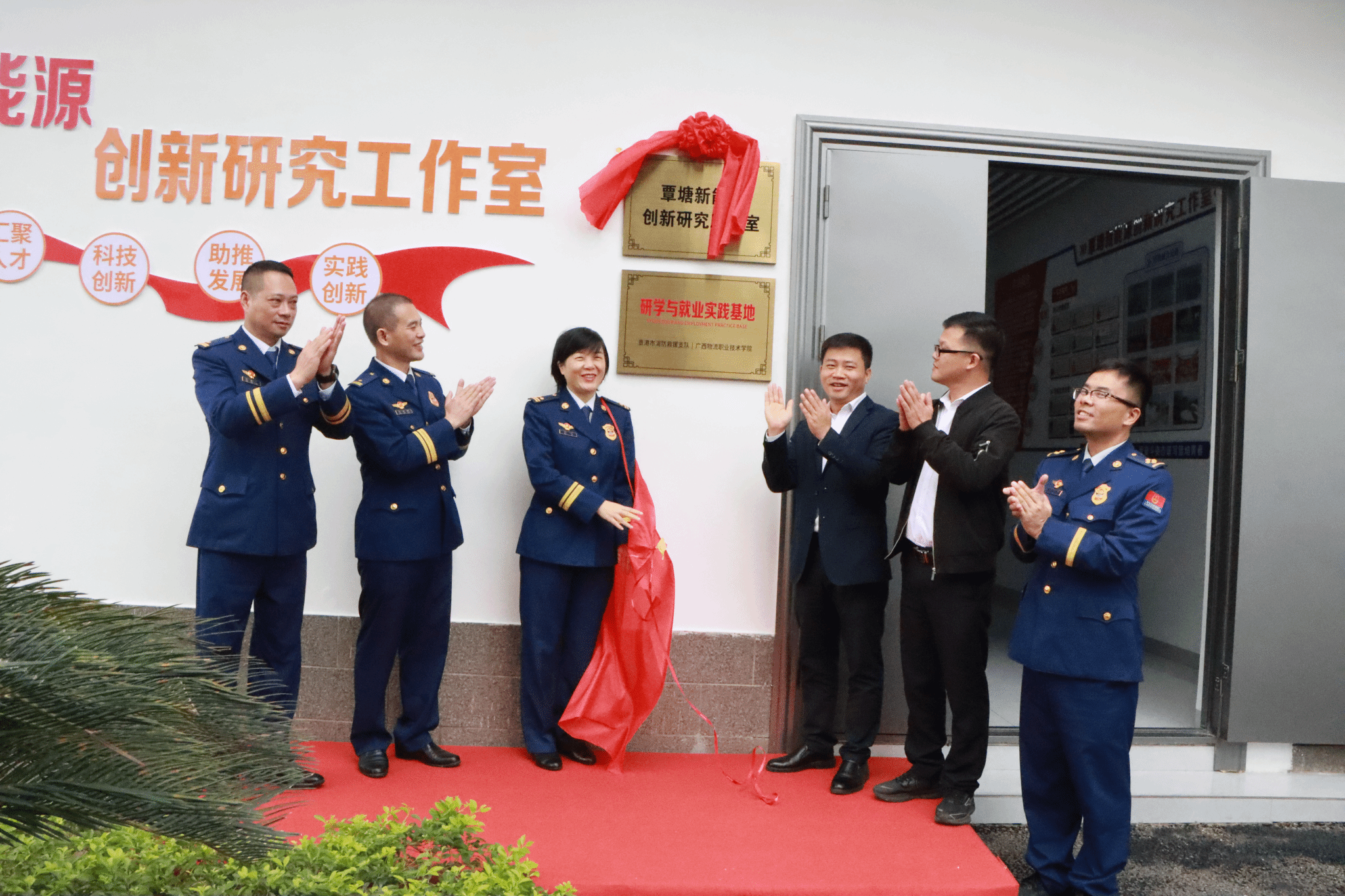 2025年11月6日,广西物流职业技术学院智慧交通学院与覃塘区消防救援大队,在贵港市覃塘区新能消防救援站联合举行“覃塘新能源创新研究工作室”暨“研学与就业实践基地”揭牌仪式。