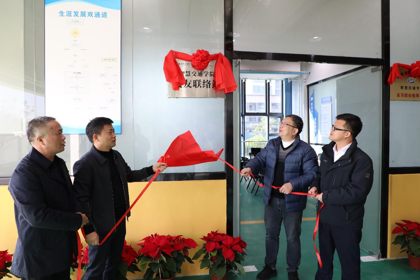 学校招生就业处、智慧交通学院负责人,师生代表,相关企业代表70余人参加揭牌仪式。