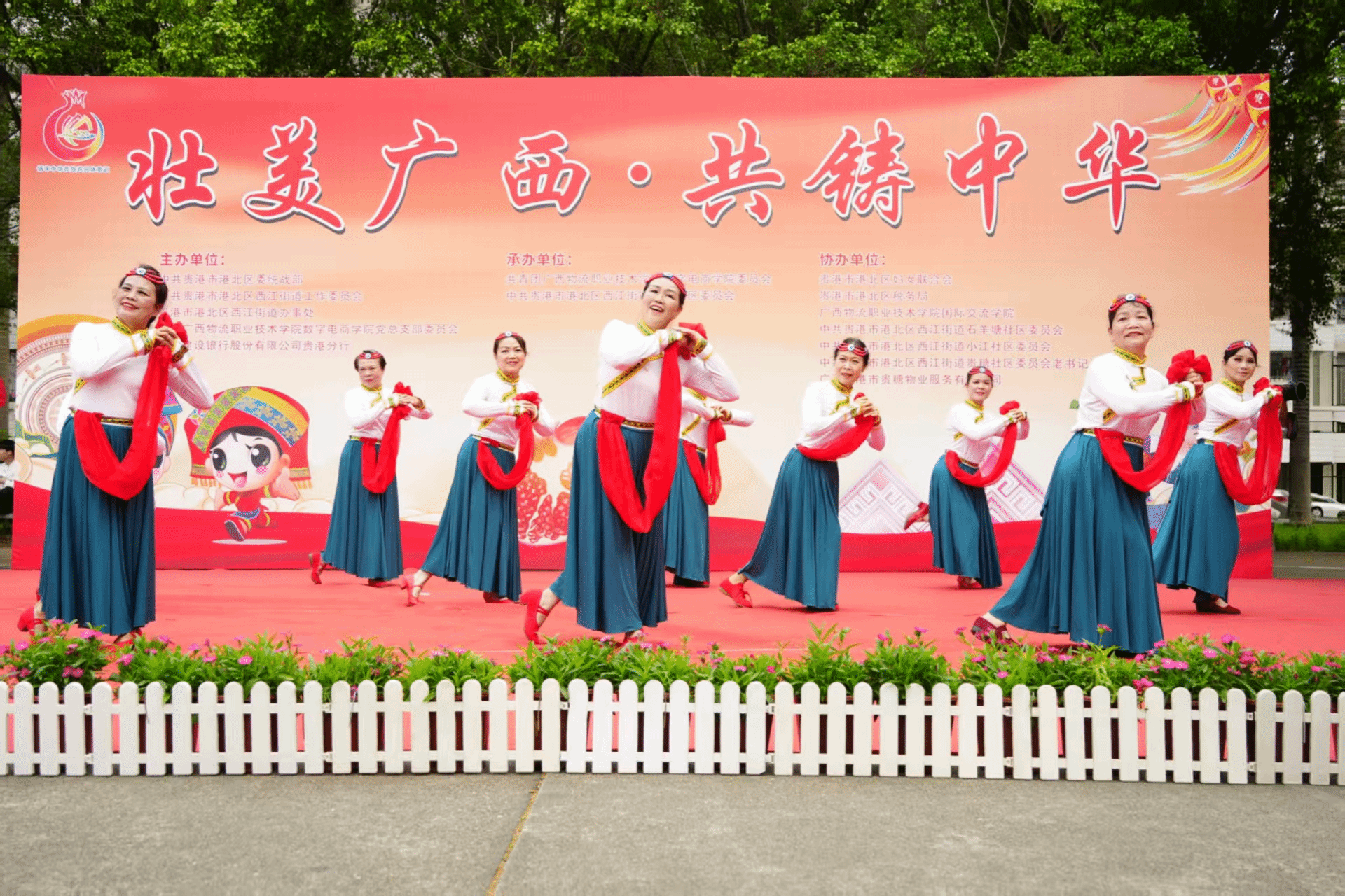 上午9时,社区广场暖意融融,活动正式拉开帷幕。数字电商学院与贵糖社区联合组织老、中、青三代文艺志愿者,与现场群众同台献艺,呈现了一场精彩纷呈的民俗文艺盛宴。《“蔗”里锦绣》《青春回响》《闪耀北宁》(越南留学生舞蹈)、川剧《变脸》、经典山歌《山歌好比春江水》及《中华民族一家亲》等节目轮番上演,形式多样、内涵丰富,吸引了社区及周边约600名居民到场观看、参与。