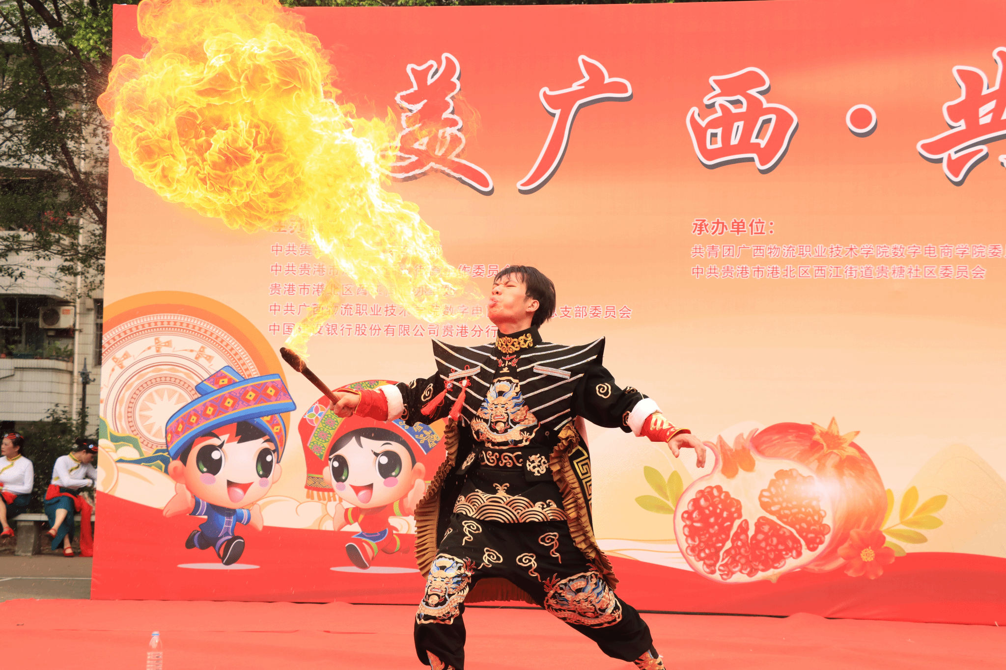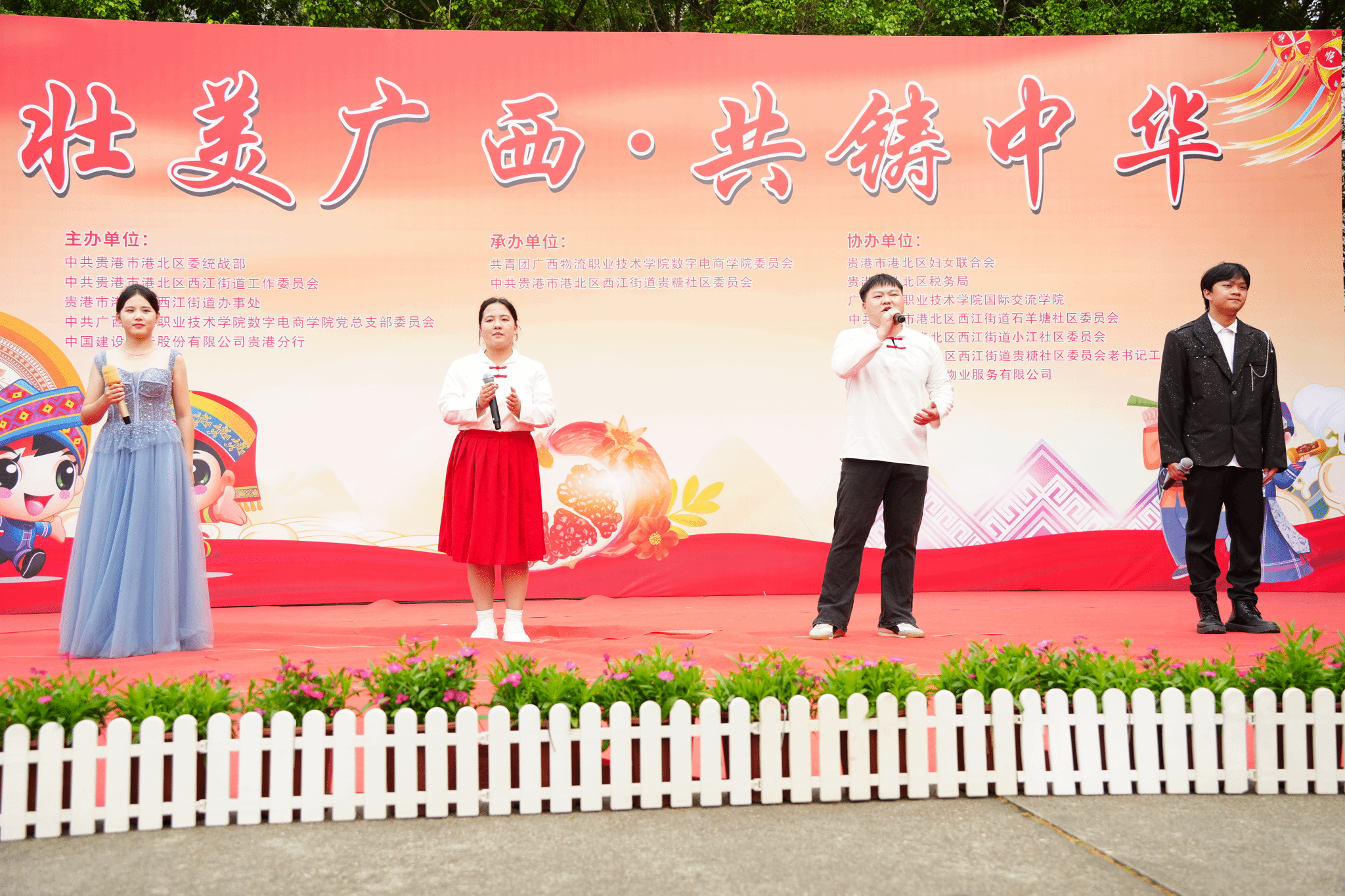 在“广西三月三”传统节日来临之际,4月14日,数字电商学院党总支组织师生志愿者走进贵港市港北区贵糖社区,开展“壮美广西 共铸中华”校地共建民俗联欢活动。活动以传统节日为纽带,将校园文化融入社区生活,让民俗风情走近群众身边,在传承民族文化中传递邻里温情,在互动交流中深化校社情谊,切实推动新时代文明实践走深走实。