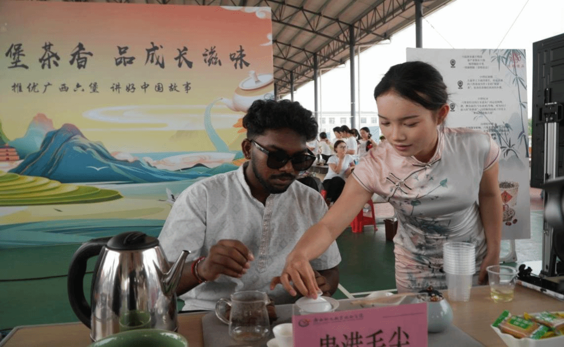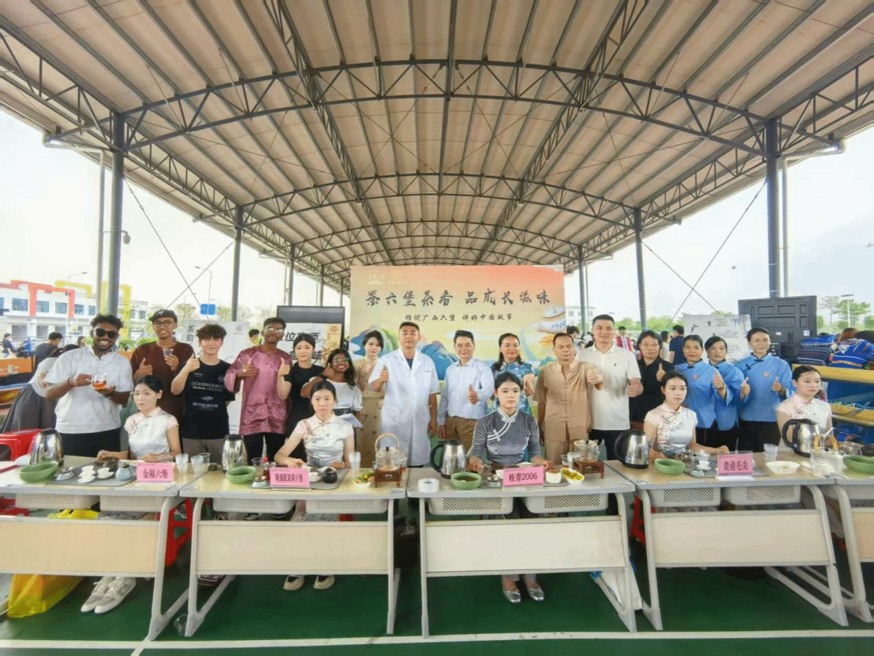 泡茶饮茶区作为活动核心区域,摆放雅致茶席,重点供应六堡茶及贵港富硒茶。茶艺师现场分茶、奉茶,千名师生共品茶汤醇厚、茶香四溢。留学生尝试泡茶技艺,在慢品茶香中感受中国茶文化的雅致。