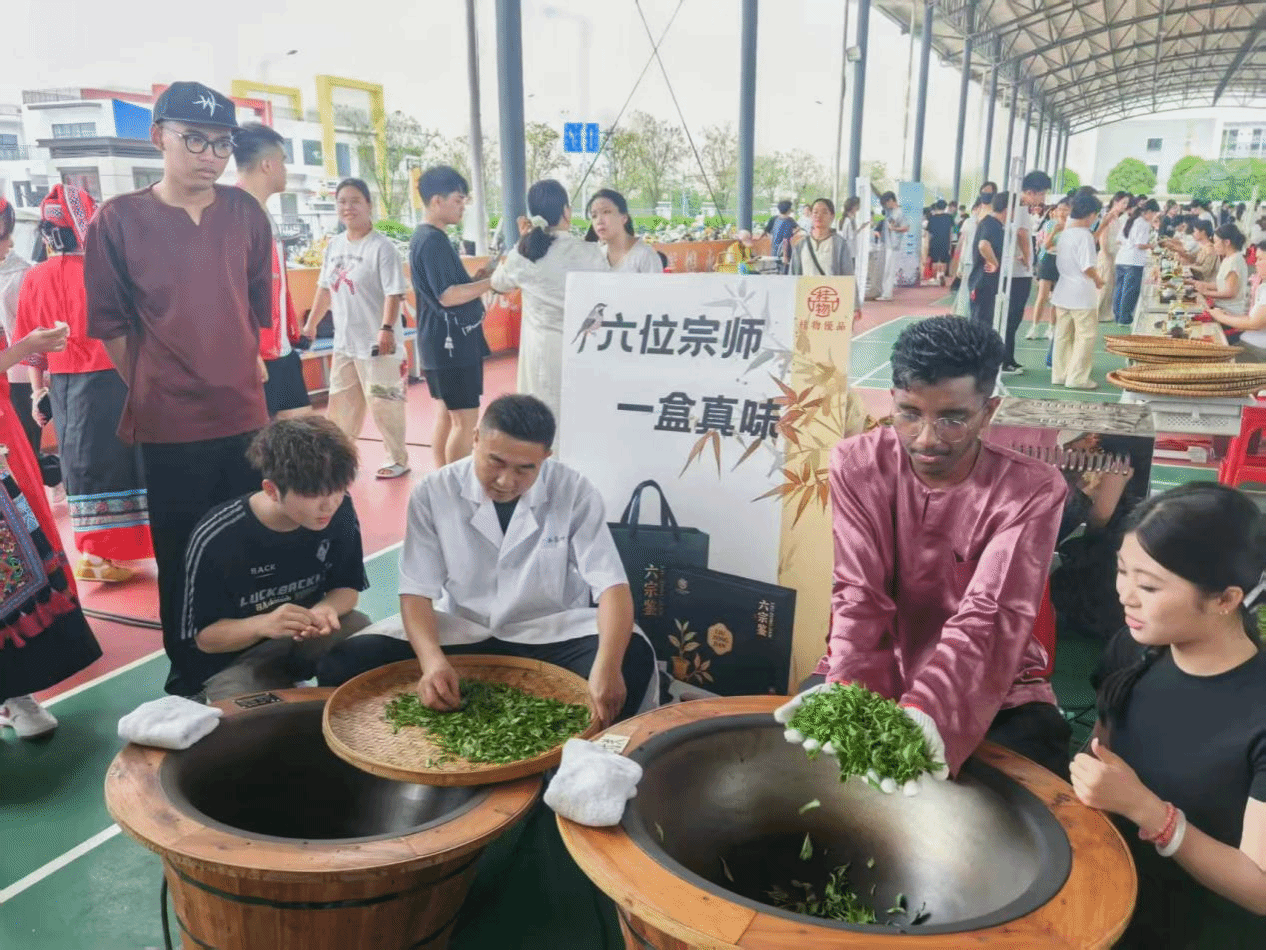 本次千人茶饮活动精心规划三大体验区域,打造集制茶炒茶、泡茶饮茶、数字电商体验于一体的沉浸式茶事盛会。传统制茶炒茶体验区以贵港覃塘毛尖为原料,完整演示手工铁锅炒茶、茶叶揉捻、制茶成型等工序。参与者上手体验传统绿茶制作技艺,近距离了解茶叶从鲜叶到成品的过程。