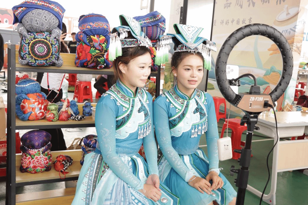 电商直播区以数智赋能产业活力。学院师生团队发挥专业所长,搭建电商体验区,开展线上直播带货、茶品线上选购、短视频推广等活动,同步打通“线下体验+线上下单”消费渠道。利用直播、短视频等新媒体渠道,宣传六堡茶与贵港优质茶品,切实以数字技能助力茶产品拓销路、提销量。